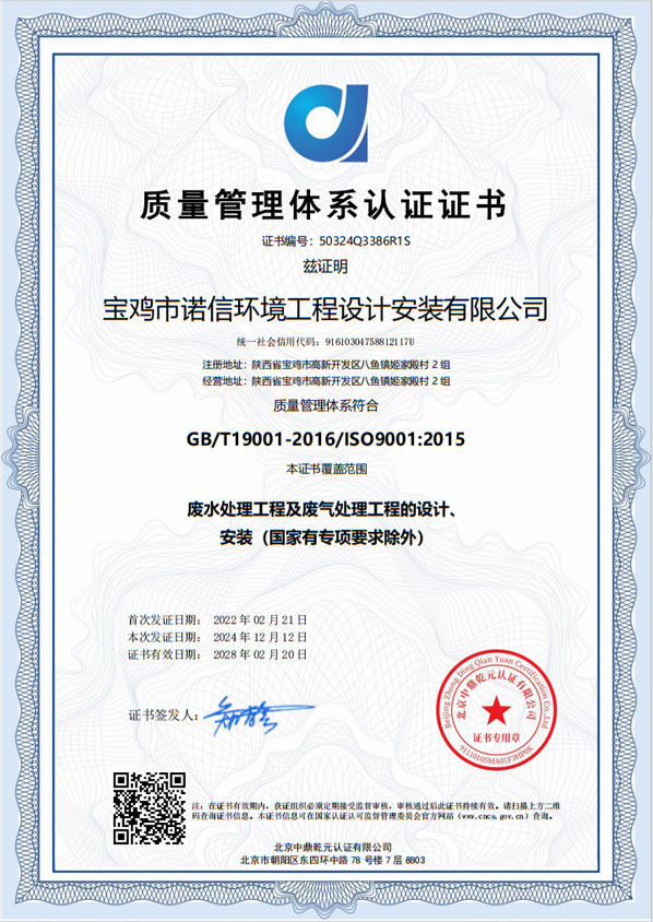 質(zhì)量管理體系認(rèn)證證書
